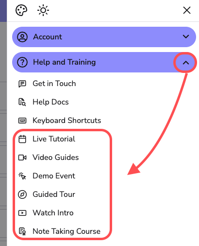 To access our training guides, click the three horizontal line icon in the top right corner.